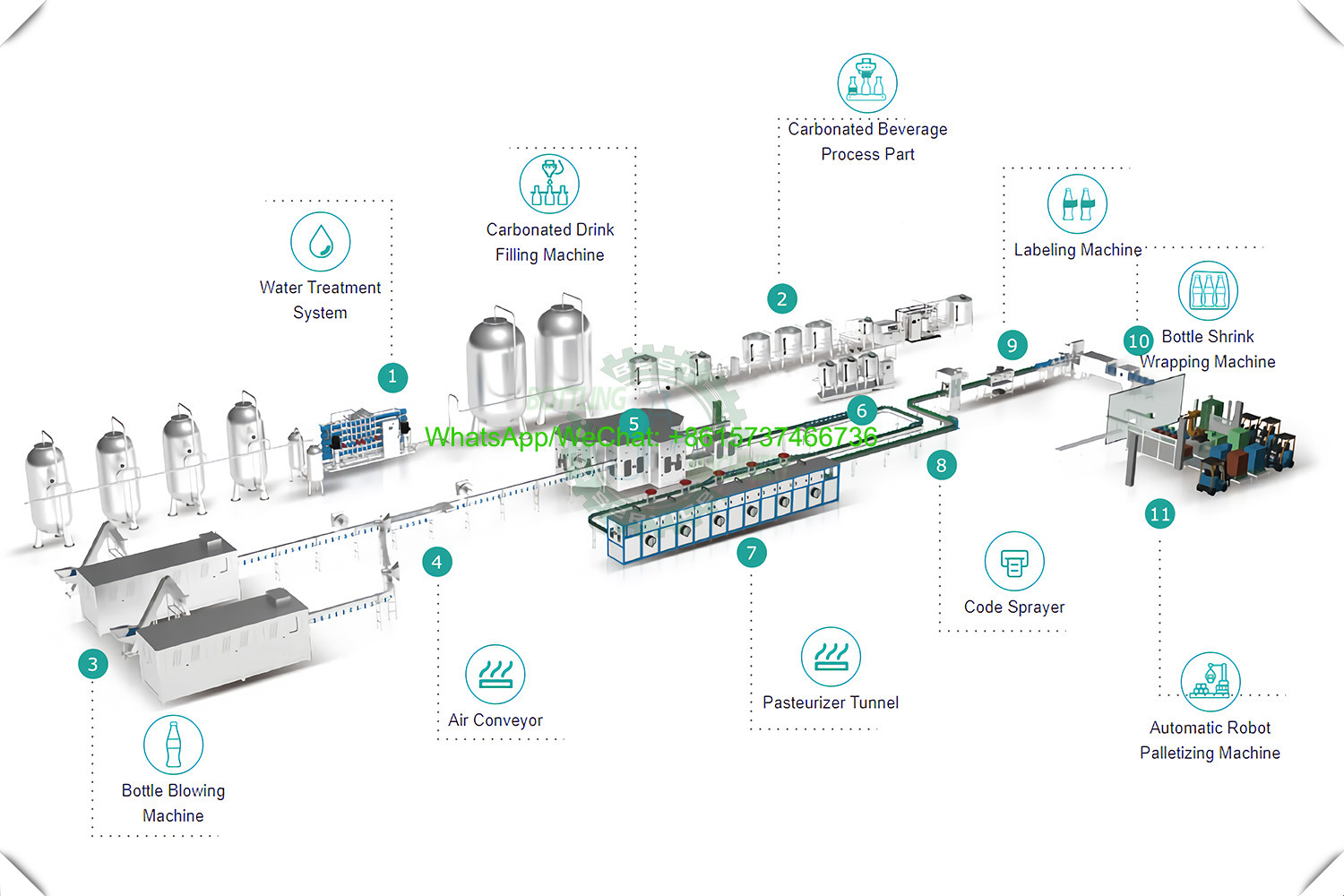 Please check the video of bottled carbonated drink production and filling line: https://youtu.be/CgGAyvpPVuo