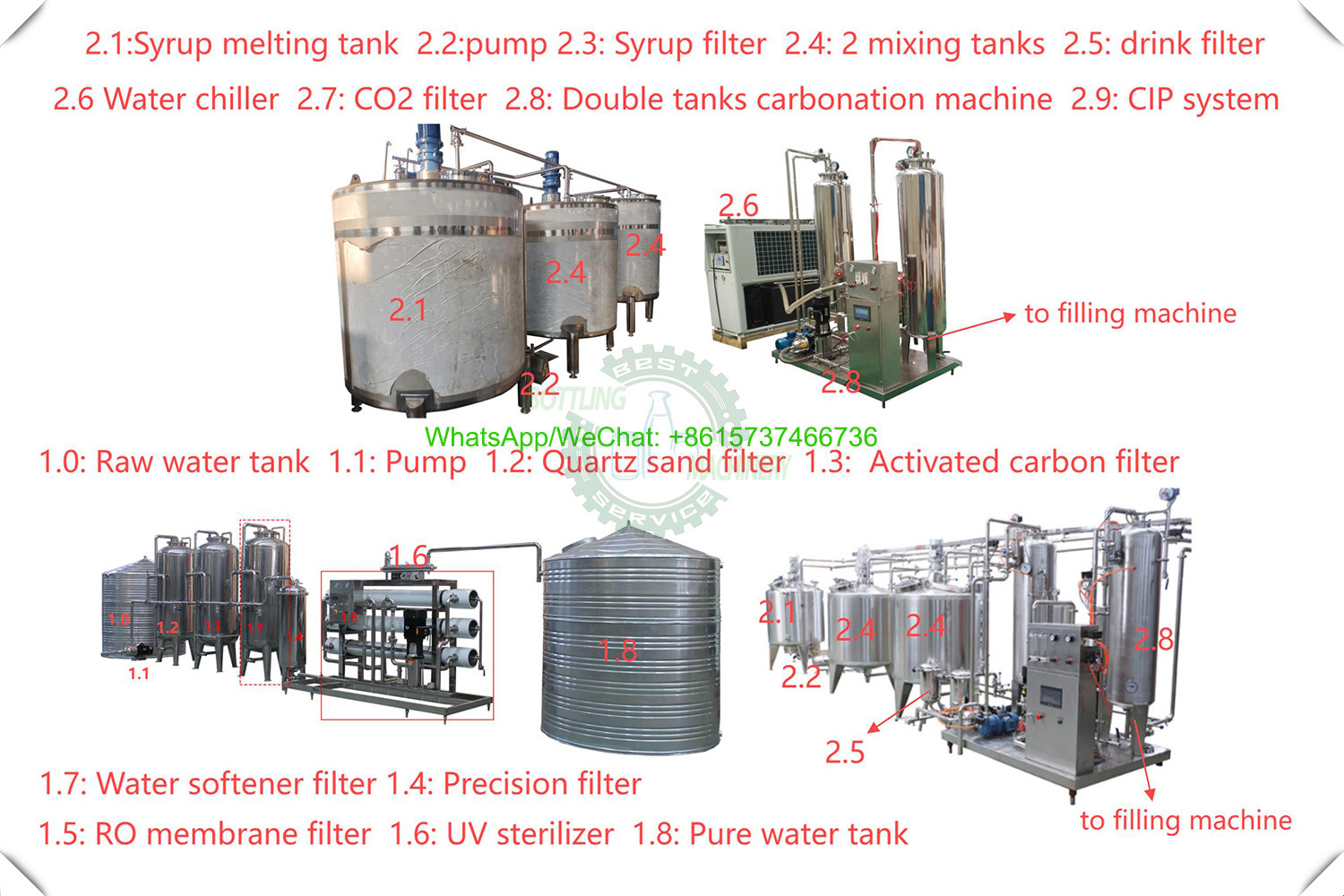 The core beverage processing section includes the following key equipment:
