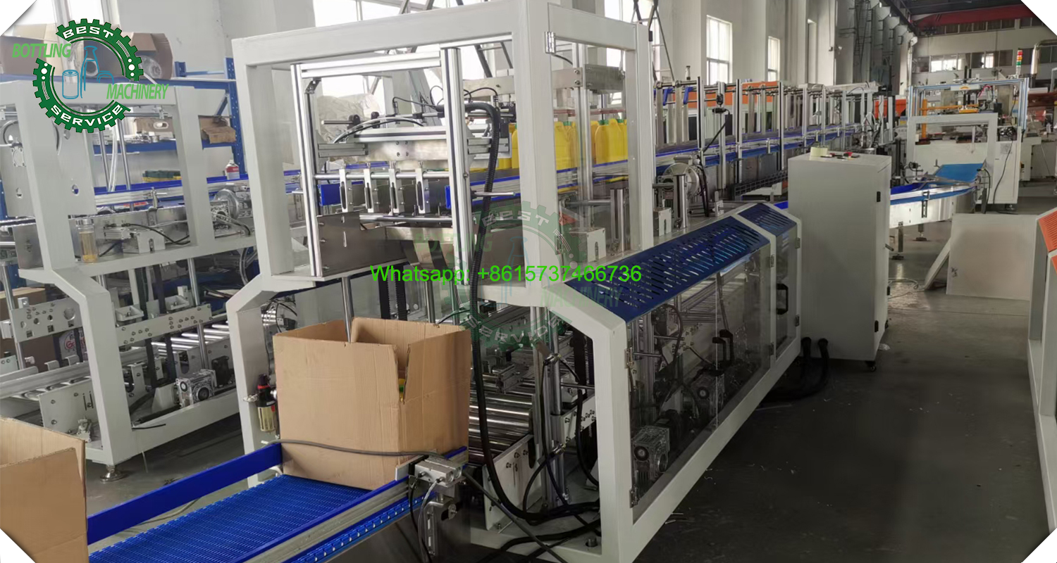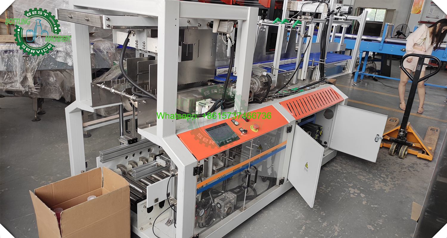 It features both manual and automatic operational modes. Advantages include operational safety, a compact footprint, and a large working space. Equipped with multiple protective functions, it responds promptly to faults. For example, it will automatically pause if bottles are insufficient on the incoming conveyor or infeed platform; it will also shut down automatically in case of bottle jams or carton misplacement.